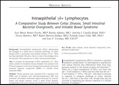 Intraepithelial lymphocytes (IELs) phenotyping has emerged as a useful test in intestinal pathology. In celiac disease (CD), a permanent and marked increase of gd+ IELs has been described. However, there is a lack of knowledge about this peculiar IELs population in other intestinal pathologies.